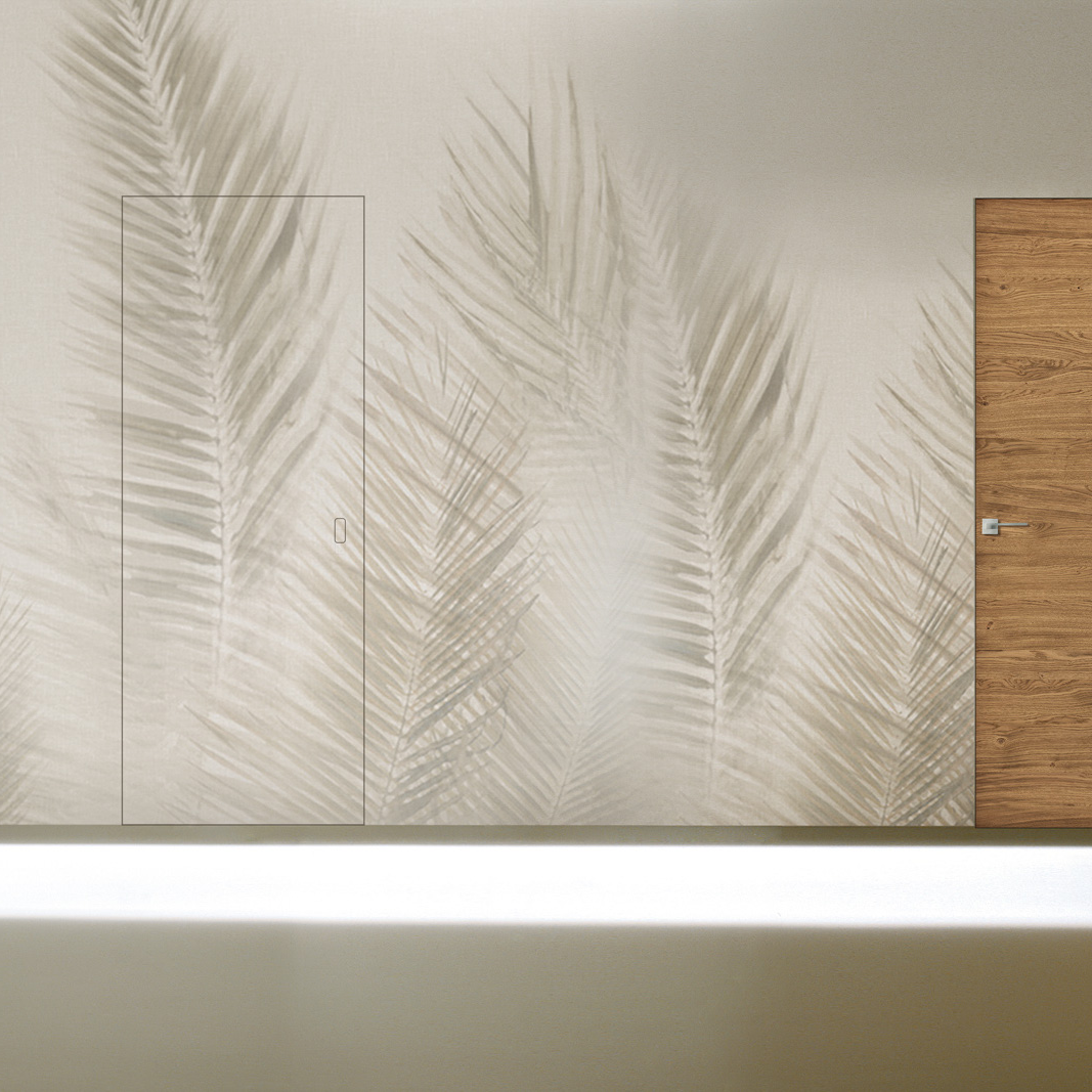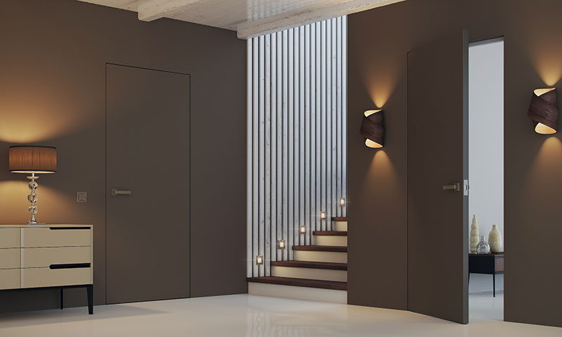 Дверь почти полностью сливаются со стеной, помещение приобретает оригинальный внешний вид